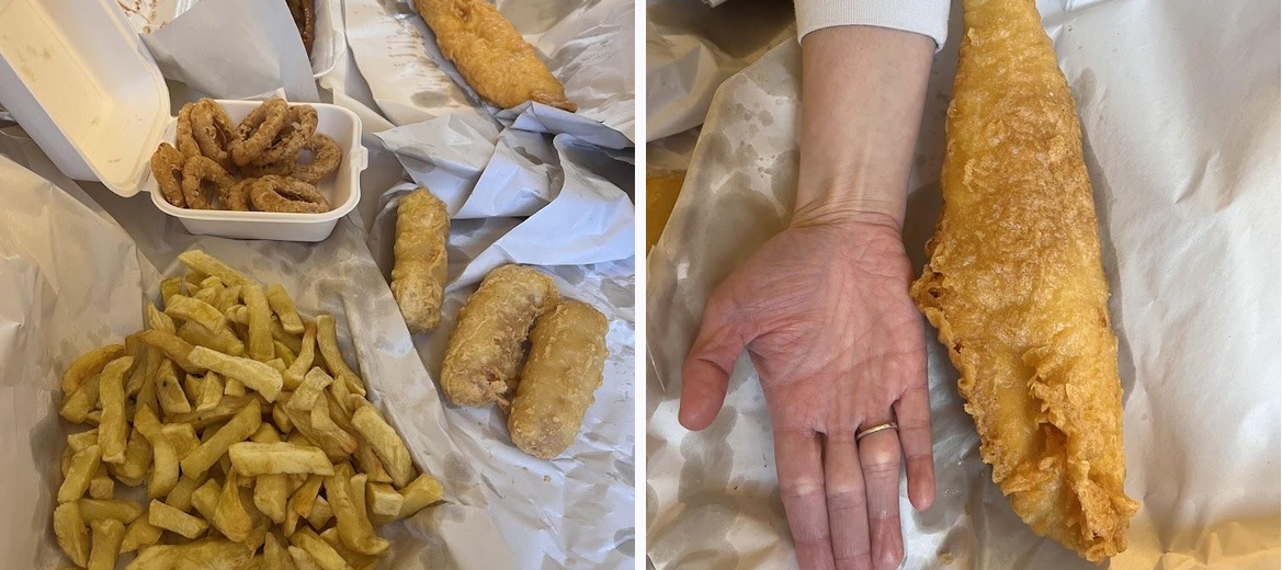 Best fish and chips for a long time. The large portions of plaice and cod were huge and delicious. Quick service,wrapped well, average price. Will definitely go again